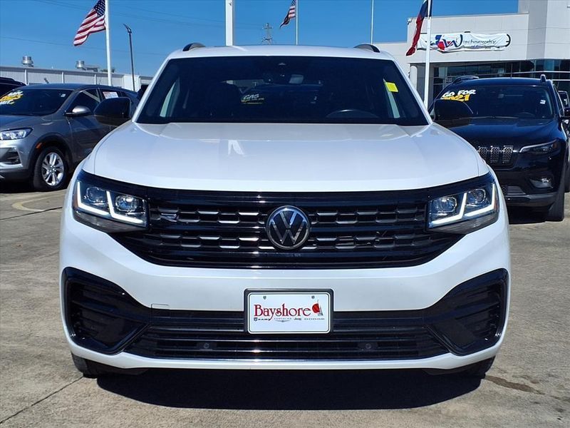 CARFAX One-Owner. Opal White 2023 Volkswagen Atlas Cross Sport 3.6L V6 SEL R-Line AWD 8-Speed Automatic with Tiptronic 3.6L VR6 ABS brakes, Active Cruise Control, Alloy wheels, Compass, Electronic Stability Control, Front dual zone A/C, Heated door mirrors, Heated front seats, Illuminated entry, Low tire pressure warning, Memory seat, Navigation System, Power driver seat, Power Liftgate, Power steering, Power windows, Remote keyless entry, Steering wheel mounted audio controls, Traction control.