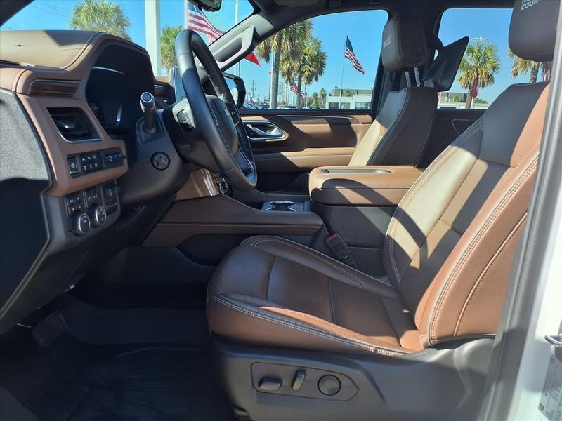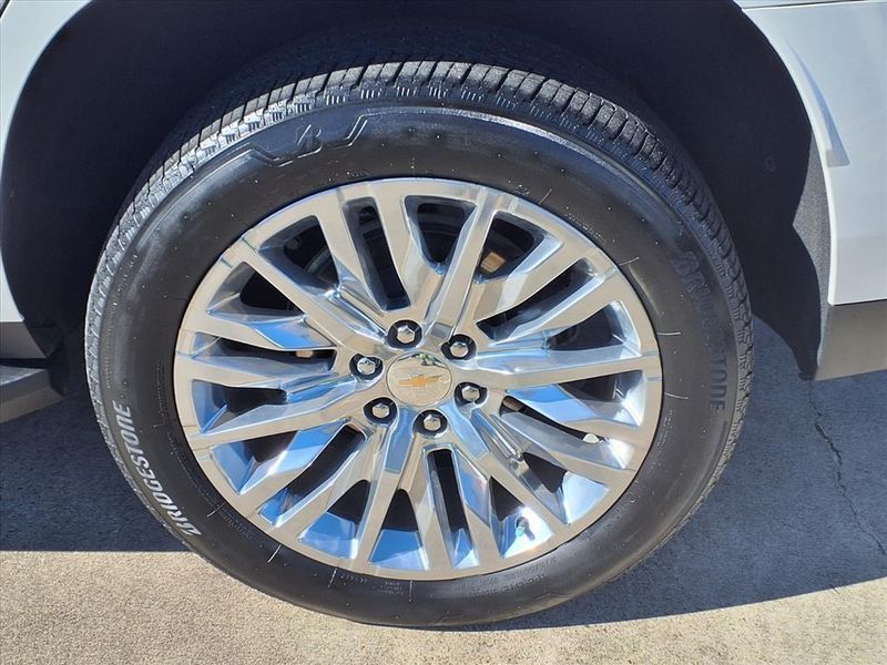 THIS VEHICLE IS EQUIPPED WITH THE FOLLOWING FEATURES AND OPTIONS :Advanced Trailering Package (Hitch View w/Pan/Zoom Image Adjustment, Integrated Trailer Brake Controller, Smart Trailer Integration Indicator, and Trailer Side Blind Zone Alert), License Plate Front Mounting Package, Max Trailering Package (Extra Capacity Cooling System), Preferred Equipment Group 3LZ (15'' Diagonal Multi-Color Head-Up Display, 1st & 2nd Row Color-Keyed Carpeted Floor Mats, 2-Speed Active Electronic AutoTrac Transfer Case, 3rd Row 60/40 Power-Folding Split-Bench Seat, Adaptive Cruise Control, Bose 10-Speaker Centerpoint Surround Audio Sys Ft, Bright Front & Rear Door Sill Plates, Chrome Door Handles w/Body-Color Strip, Color-Keyed Carpeting Floor Covering, Driver & Front Outboard Passenger Airbags, Dual Exhaust System, Enhanced Automatic Emergency Braking, Enhanced Driver Information Center, Floor Console, Hands-Free Rear Power Programmable Liftgate, HD Surround Vision, Heated 2nd Row Outboard Seats, Heated Steering Wheel, Hill Descent Control, Inside Rearview Auto-Dimming Rear Camera Mirror, Lane Change Alert w/Side Blind Zone Alert, LED Daytime Running Lamps, Memory Settings, Outside Heated Power-Adjustable Mirrors, Power Release 2nd Row Bucket Seats, Power Tilt & Telescopic Steering Column, Rear Camera Mirror Washer, Rear Cross Traffic Alert, Rear Pedestrian Alert, Remote Start, Safety Alert Seat, SiriusXM w/360L, Universal Home Remote, Wireless Charging, and Wrapped Steering Wheel), 4WD, Jet Black/Mocha Leather, 10 Speakers, 12-Way Power Driver & Passenger Seat Adjusters, 3.23 Rear Axle Ratio, 3rd row seats: split-bench, 4-Wheel Disc Brakes, ABS brakes, Adaptive suspension, Air Conditioning, Alloy wheels, AM/FM radio: SiriusXM with 360L, Apple CarPlay/Android Auto, Auto High-beam Headlights, Auto-dimming door mirrors, Auto-dimming Rear-View mirror, Auto-leveling suspension, Automatic temperature control, Brake assist, Bumpers: body-color, Compass, Delay-off headlights, Driver & Front Passenger Heated & Ventilated Seats, Driver door bin, Driver vanity mirror, Dual front impact airbags, Dual front side impact airbags, Dual-Pane Power Panoramic Sunroof, Electronic Stability Control, Emergency communication system: OnStar and Chevrolet connected services capable, Exterior Parking Camera Rear, Four wheel independent suspension, Front anti-roll bar, Front Bucket Seats, Front Center Armrest, Front dual zone A/C, Front High-Back Reclining Bucket Seats, Front reading lights, Fully automatic headlights, Garage door transmitter, Heads-Up Display, Heated door mirrors, Heated Driver & Front Passenger Seats, Heated front seats, Heated rear seats, Heated steering wheel, Illuminated entry, Infotainment Display, Low tire pressure warning, Magnetic Ride Control Suspension, Memory seat, Navigation System, Occupant sensing airbag, Outside temperature display, Overhead airbag, Overhead console, Panic alarm, Passenger door bin, Passenger vanity mirror, Perforated Leather Seat Trim, Power door mirrors, Power driver seat, Power Liftgate, Power passenger seat, Power steering, Power windows, Premium audio system: Chevrolet Infotainment 3 Premium, Radio: Chevrolet Infotainment 3 Premium System, Rain sensing wipers, Rear air conditioning, Rear anti-roll bar, Rear reading lights, Rear Seat Media System, Rear window defroster, Rear window wiper, Remote keyless entry, Roof rack: xxxxxx, Security system, Set of 4 Wheel Locks (LPO), Speed control, Speed-sensing steering, Split folding rear seat, Spoiler, Steering wheel memory, Steering wheel mounted audio controls, Tachometer, Telescoping steering wheel, Tilt steering wheel, Traction control, Trip computer, Turn signal indicator mirrors, Variably intermittent wipers, Ventilated front seats, Voltmeter, Wheels: 22'' x 9'' Polished Aluminum, and Wheels: 22'' x 9