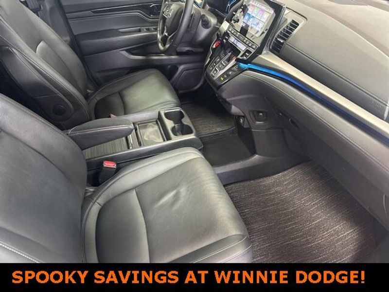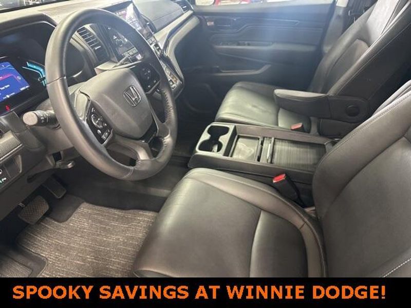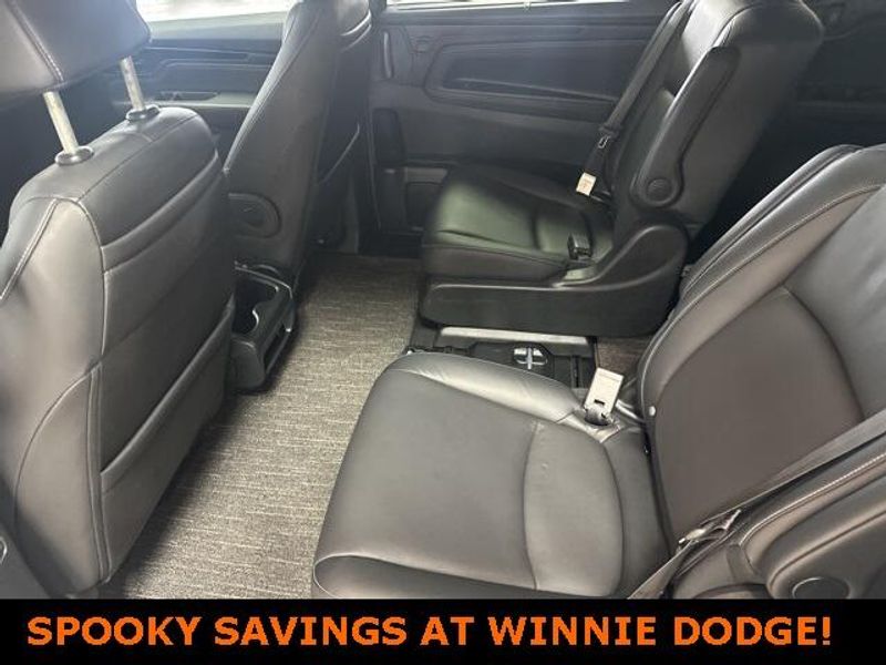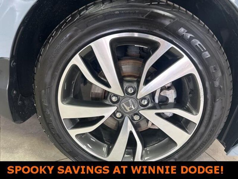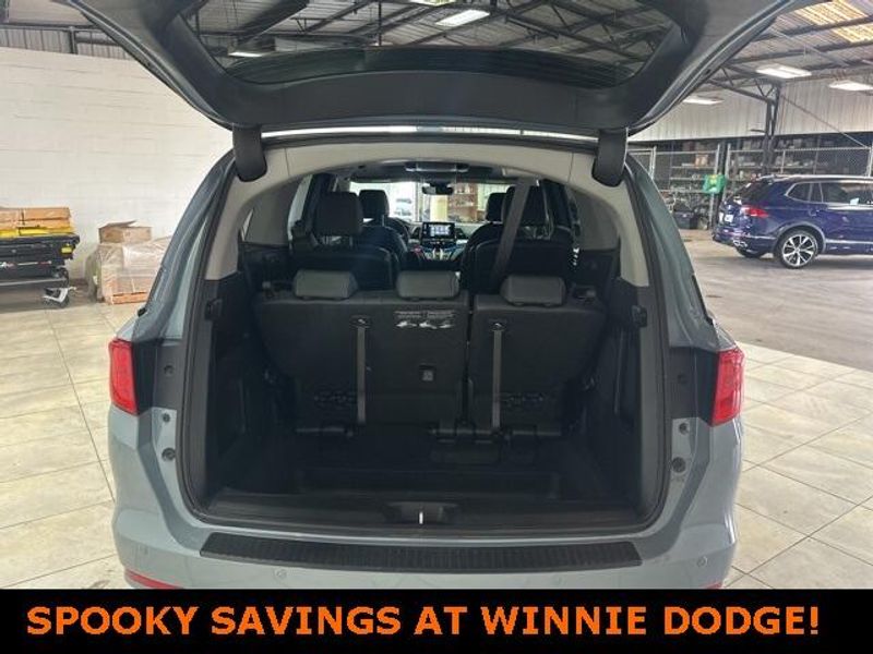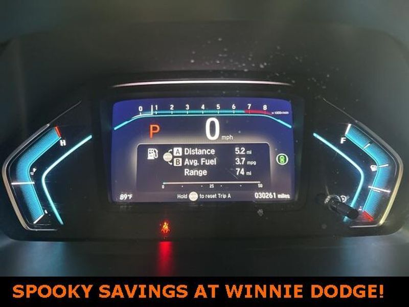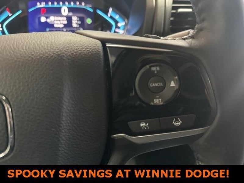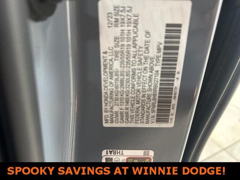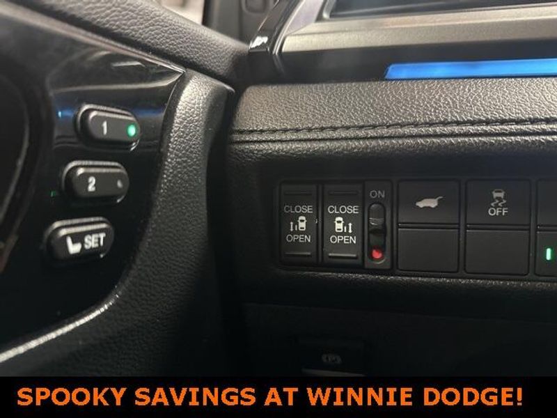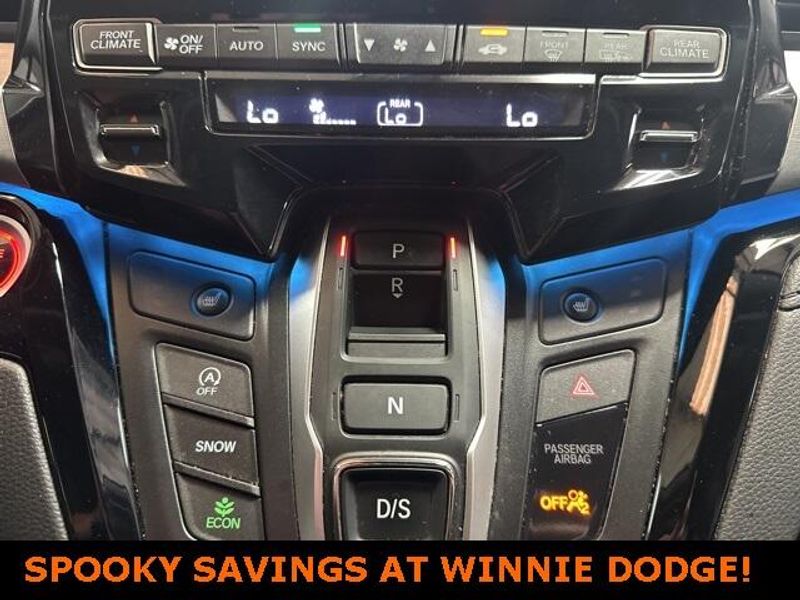 THIS VEHICLE IS EQUIPPED THE FOLLOWING FEATURES AND OPTIONS: 3.61 Axle Ratio, 3rd row seats: split-bench, 4-Wheel Disc Brakes, 7 Speakers, A/V remote: CabinControl, ABS brakes, Adaptive Cruise Control: Adaptive Cruise Control (ACC) with Low-Speed Follow, Air Conditioning, Alloy wheels, AM/FM radio: SiriusXM, Anti-whiplash front head restraints, Apple CarPlay/Android Auto, Auto High-beam Headlights, Auto-dimming Rear-View mirror, Automatic temperature control, Blind Spot Information (BSI) System warning, Brake assist, Bumpers: body-color, CD player, Compass, Delay-off headlights, Driver door bin, Driver vanity mirror, Driver's Seat Mounted Armrest, Dual front impact airbags, Dual front side impact airbags, DVD-Audio, Electronic Stability Control, Emergency communication system: HondaLink, Exterior Parking Camera Rear, Four wheel independent suspension, Front anti-roll bar, Front Bucket Seats, Front dual zone A/C, Front fog lights, Front reading lights, Fully automatic headlights, Garage door transmitter: HomeLink, Headphones, Heated door mirrors, Heated Front Bucket Seats, Heated front seats, Illuminated entry, Knee airbag, Lane departure: Lane Keeping Assist System (LKAS) active, Leather Seat Trim, Leather steering wheel, Low tire pressure warning, Memory seat, Navigation system: Honda Satellite-Linked Navigation System, Occupant sensing airbag, Outside temperature display, Overhead airbag, Overhead console, Panic alarm, Passenger door bin, Passenger seat mounted armrest, Passenger vanity mirror, Power door mirrors, Power driver seat, Power Liftgate, Power moonroof, Power passenger seat, Power steering, Power windows, Radio data system, Radio: 160-Watt AM/FM/HD/SiriusXM Audio System, Rear air conditioning, Rear anti-roll bar, Rear audio controls, Rear reading lights, Rear seat center armrest, Rear window defroster, Rear window wiper, Reclining 3rd row seat, Remote keyless entry, Security system, Speed control, Speed-sensing steering, Speed-Sensitive Wipers, Split folding rear seat, Spoiler, Steering wheel mounted audio controls, Tachometer, Telescoping steering wheel, Tilt steering wheel, Traction control, Trip computer, Turn signal indicator mirrors, Variably intermittent wipers, and Wheels: 19'' Machine-Finished Alloy.