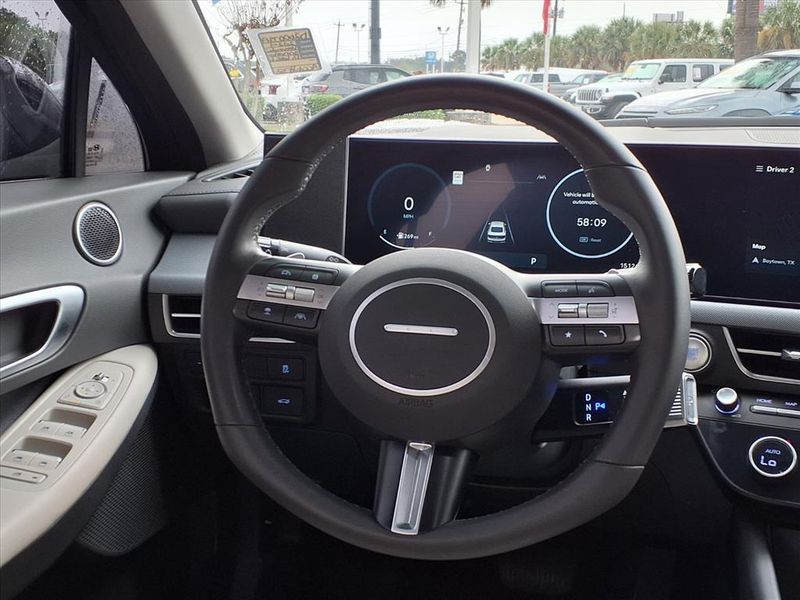 THIS VEHICLE IS EQUIPPED WITH THE FOLLOWING FEATURES AND OPTIONS :Convenience Package (12.3'' LCD Instrument Cluster, 18'' x 7.5J Aluminum Alloy Wheels, Auto-Dimming Mirror, Hyundai Digital Key 2.0 Premium, Leather-Wrapped Steering Wheel, LED Interior Lights, Option Group 02, Panoramic Sunroof, Radio: AM/FM/HD/SiriusXM/Navigation, and Wireless Device Charging), Dark Gray Cloth, 17'' x 7.0J Aluminum Alloy Wheels, 4-Wheel Disc Brakes, 6 Speakers, ABS brakes, Air Conditioning, Alloy wheels, AM/FM radio: SiriusXM, Apple CarPlay & Android Auto, Auto High-beam Headlights, Automatic temperature control, Booster Cables, Brake assist, Bumpers: body-color, Cargo Tray, Carpeted Floor Mats, Delay-off headlights, Driver door bin, Driver vanity mirror, Dual front impact airbags, Dual front side impact airbags, Electronic Stability Control, Emergency communication system: Bluelink, Exterior Parking Camera Rear, First Aid Kit, First Aid Supplies, Flashlight, Four wheel independent suspension, Front anti-roll bar, Front Bucket Seats, Front Center Armrest, Front dual zone A/C, Front reading lights, Fully automatic headlights, Heated door mirrors, Heated Front Bucket Seats, Heated front seats, Illuminated entry, Knee airbag, Low tire pressure warning, Occupant sensing airbag, Outside temperature display, Overhead airbag, Overhead console, Panic alarm, Passenger door bin, Passenger vanity mirror, Power door mirrors, Power driver seat, Power steering, Power windows, Premium Cloth Seating Surfaces, Radio data system, Radio: AM/FM/HD/SiriusXM, Rear anti-roll bar, Rear seat center armrest, Rear side impact airbag, Rear window defroster, Remote keyless entry, Security system, Speed control, Speed-sensing steering, Speed-Sensitive Wipers, Split folding rear seat, Steering wheel mounted audio controls, Tachometer, Telescoping steering wheel, Tilt steering wheel, Traction control, Trip computer, Trunk Cargo Net, Variably intermittent wipers, and Wheel Locks. Odometer is 20422 miles below market average! 25/36 City/Highway MPG