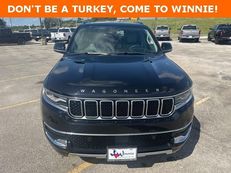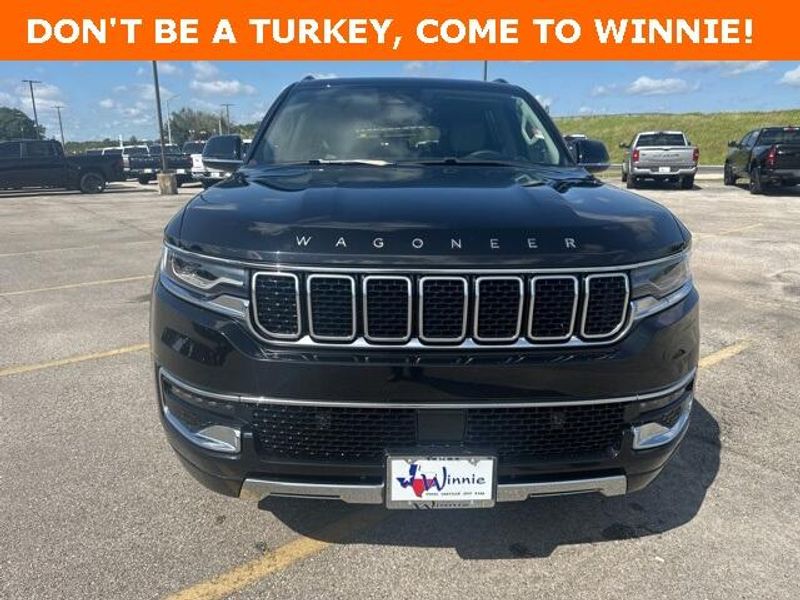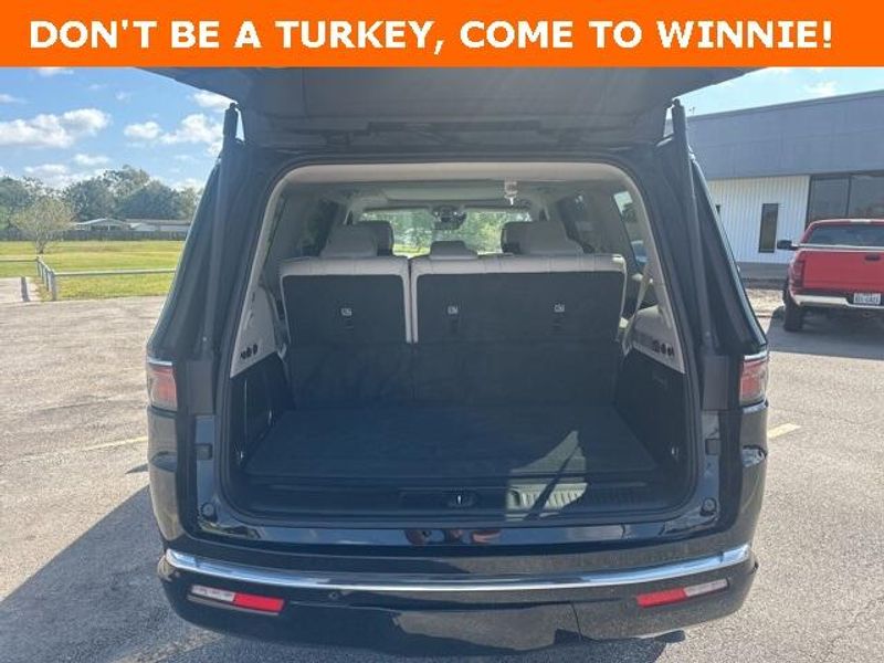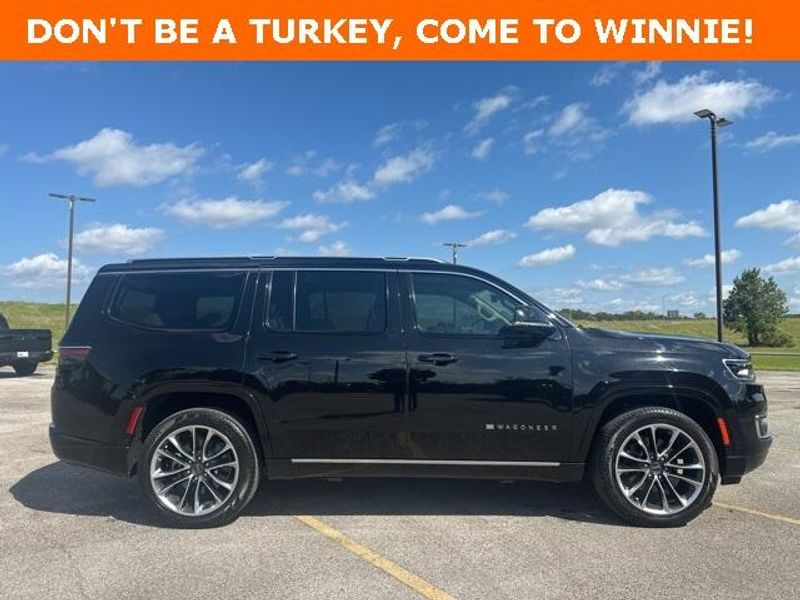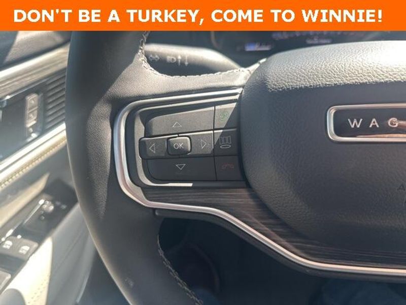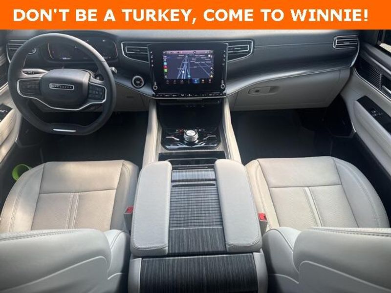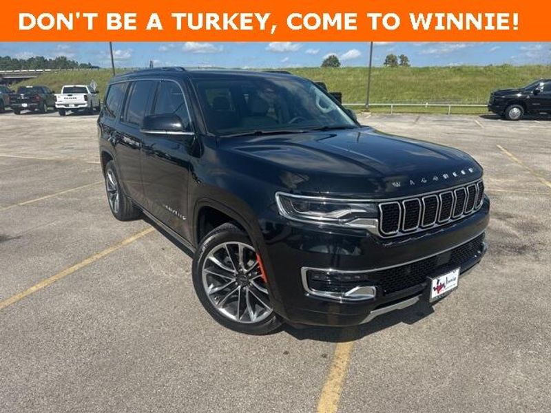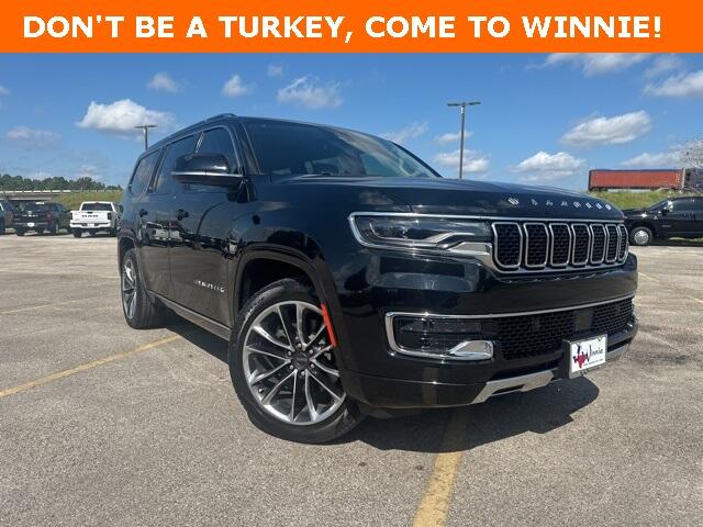 THIS VEHICLE IS EQUIPPED THE FOLLOWING FEATURES AND OPTIONS: Preferred Equipment Group (DISC) (60/40 Power Recline 3rd Row Seat, Heads-Up Display, Quadra-Lift Air Suspension, and Semi Active Damping), Premium Group I (19 Speaker McIntosh Audio System, 3 Panel Sunroof, Adjustable Roof Rail Crossbars, Cargo Cover, Luxury Front & Rear Floor Mats, Power Deployable Running Boards, Reversible Carpet/Vinyl Cargo Mat, and Wheels: 22'' x 9.0'' Premium 3 Aluminum), Quick Order Package 25N, Rear Seat Video Group 1 (Amazon Fire TV Built-In, Seatback Video Screens, and Video USB Port), 10 Speakers, 3.55 Rear Axle Ratio, 3rd row seats: bench, 4-Wheel Disc Brakes, 8-Passenger Seating, ABS brakes, Adjustable pedals, Air Conditioning, Alloy wheels, AM/FM radio: SiriusXM with 360L, Anti-whiplash front head restraints, Apple CarPlay/Android Auto, Audio memory, Auto High-beam Headlights, Auto-dimming door mirrors, Auto-dimming Rear-View mirror, Auto-leveling suspension, Automatic temperature control, Brake assist, Bumpers: body-color, Compass, Delay-off headlights, Driver door bin, Driver vanity mirror, Driver's Seat Mounted Armrest, Dual front impact airbags, Dual front side impact airbags, Electronic Stability Control, Emergency communication system: Wagoneer Connect, Exterior Parking Camera Rear, Four wheel independent suspension, Front anti-roll bar, Front Bucket Seats, Front Center Armrest w/Storage, Front dual zone A/C, Front fog lights, Front reading lights, Fully automatic headlights, Garage door transmitter, Genuine wood console insert, Genuine wood dashboard insert, Genuine wood door panel insert, Heated door mirrors, Heated front seats, Heated rear seats, Heated steering wheel, Illuminated entry, Knee airbag, Leather Trimmed Bucket Seats, Low tire pressure warning, Memory seat, Navigation System, Normal Duty Suspension, Occupant sensing airbag, Outside temperature display, Overhead airbag, Overhead console, Panic alarm, Passenger door bin, Passenger seat mounted armrest, Passenger vanity mirror, Pedal memory, Power adjustable front head restraints, Power door mirrors, Power driver seat, Power Liftgate, Power passenger seat, Power steering, Power windows, Radio data system, Radio: Uconnect 5 Nav w/10.1'' Display, Rain sensing wipers, Rear air conditioning, Rear anti-roll bar, Rear dual zone A/C, Rear reading lights, Rear seat center armrest, Rear window defroster, Rear window wiper, Reclining 3rd row seat, Remote keyless entry, Security system, Speed control, Speed-sensing steering, Speed-Sensitive Wipers, Split folding rear seat, Steering wheel memory, Steering wheel mounted audio controls, Tachometer, Telescoping steering wheel, Tilt steering wheel, Traction control, Trip computer, Turn signal indicator mirrors, Variably intermittent wipers, Ventilated front seats, and Voltmeter.