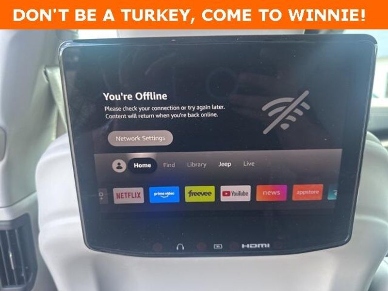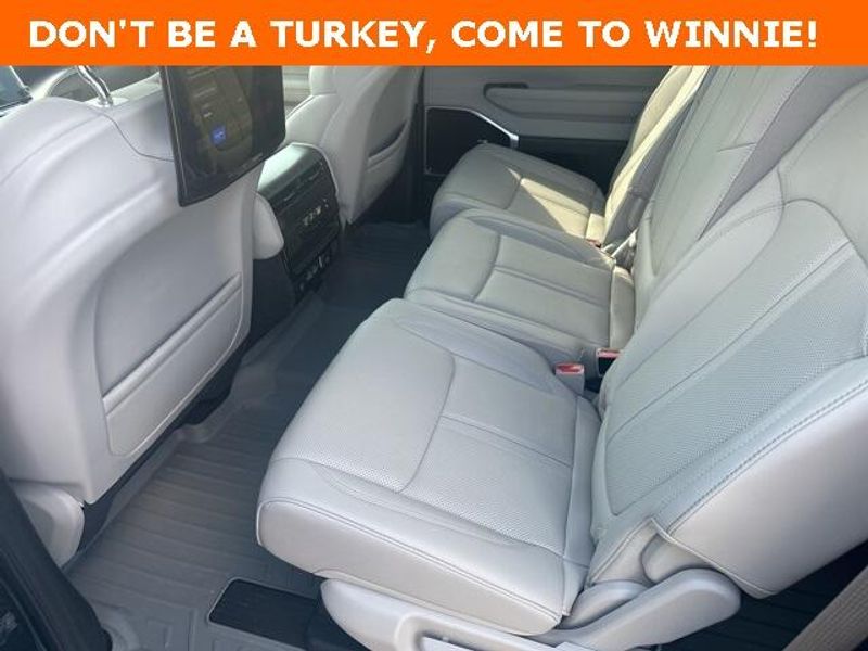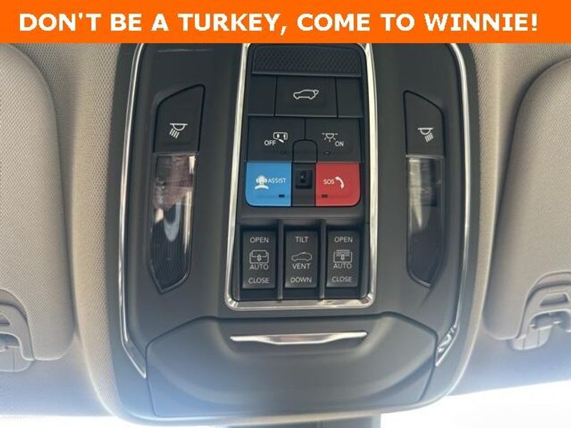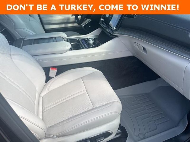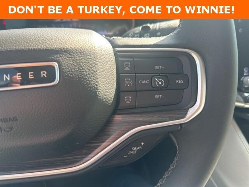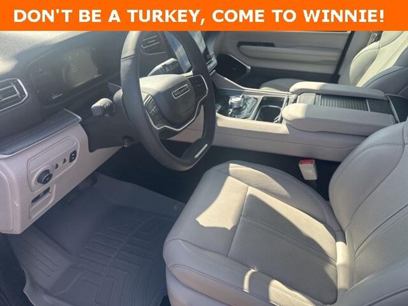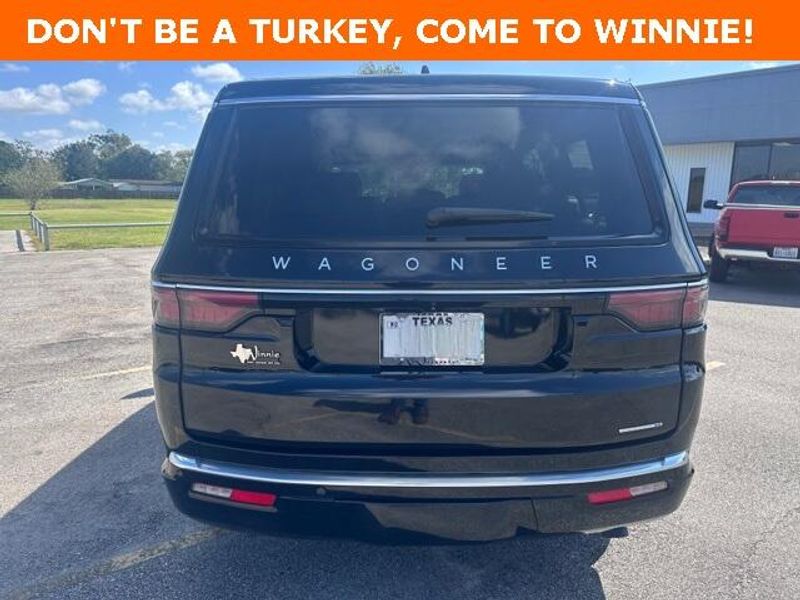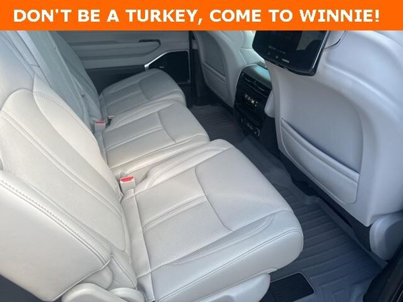 THIS VEHICLE IS EQUIPPED THE FOLLOWING FEATURES AND OPTIONS: Preferred Equipment Group (DISC) (60/40 Power Recline 3rd Row Seat, Heads-Up Display, Quadra-Lift Air Suspension, and Semi Active Damping), Premium Group I (19 Speaker McIntosh Audio System, 3 Panel Sunroof, Adjustable Roof Rail Crossbars, Cargo Cover, Luxury Front & Rear Floor Mats, Power Deployable Running Boards, Reversible Carpet/Vinyl Cargo Mat, and Wheels: 22'' x 9.0'' Premium 3 Aluminum), Quick Order Package 25N, Rear Seat Video Group 1 (Amazon Fire TV Built-In, Seatback Video Screens, and Video USB Port), 10 Speakers, 3.55 Rear Axle Ratio, 3rd row seats: bench, 4-Wheel Disc Brakes, 8-Passenger Seating, ABS brakes, Adjustable pedals, Air Conditioning, Alloy wheels, AM/FM radio: SiriusXM with 360L, Anti-whiplash front head restraints, Apple CarPlay/Android Auto, Audio memory, Auto High-beam Headlights, Auto-dimming door mirrors, Auto-dimming Rear-View mirror, Auto-leveling suspension, Automatic temperature control, Brake assist, Bumpers: body-color, Compass, Delay-off headlights, Driver door bin, Driver vanity mirror, Driver's Seat Mounted Armrest, Dual front impact airbags, Dual front side impact airbags, Electronic Stability Control, Emergency communication system: Wagoneer Connect, Exterior Parking Camera Rear, Four wheel independent suspension, Front anti-roll bar, Front Bucket Seats, Front Center Armrest w/Storage, Front dual zone A/C, Front fog lights, Front reading lights, Fully automatic headlights, Garage door transmitter, Genuine wood console insert, Genuine wood dashboard insert, Genuine wood door panel insert, Heated door mirrors, Heated front seats, Heated rear seats, Heated steering wheel, Illuminated entry, Knee airbag, Leather Trimmed Bucket Seats, Low tire pressure warning, Memory seat, Navigation System, Normal Duty Suspension, Occupant sensing airbag, Outside temperature display, Overhead airbag, Overhead console, Panic alarm, Passenger door bin, Passenger seat mounted armrest, Passenger vanity mirror, Pedal memory, Power adjustable front head restraints, Power door mirrors, Power driver seat, Power Liftgate, Power passenger seat, Power steering, Power windows, Radio data system, Radio: Uconnect 5 Nav w/10.1'' Display, Rain sensing wipers, Rear air conditioning, Rear anti-roll bar, Rear dual zone A/C, Rear reading lights, Rear seat center armrest, Rear window defroster, Rear window wiper, Reclining 3rd row seat, Remote keyless entry, Security system, Speed control, Speed-sensing steering, Speed-Sensitive Wipers, Split folding rear seat, Steering wheel memory, Steering wheel mounted audio controls, Tachometer, Telescoping steering wheel, Tilt steering wheel, Traction control, Trip computer, Turn signal indicator mirrors, Variably intermittent wipers, Ventilated front seats, and Voltmeter.