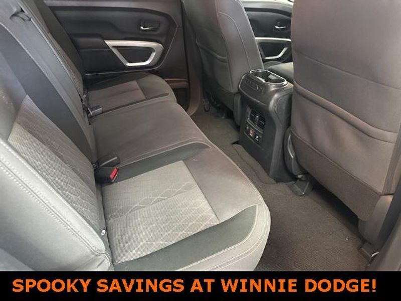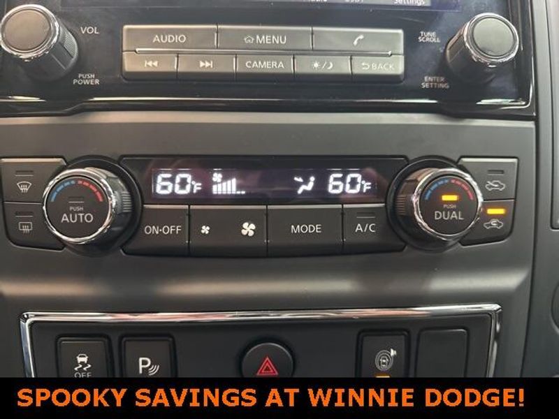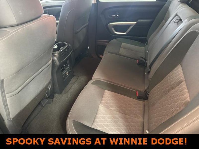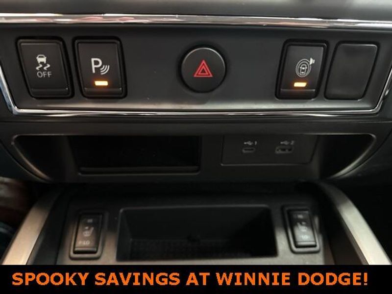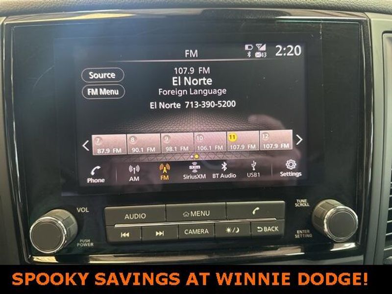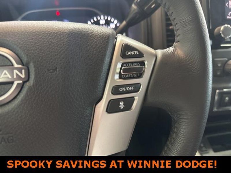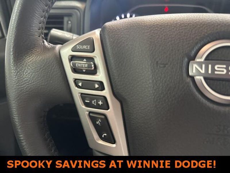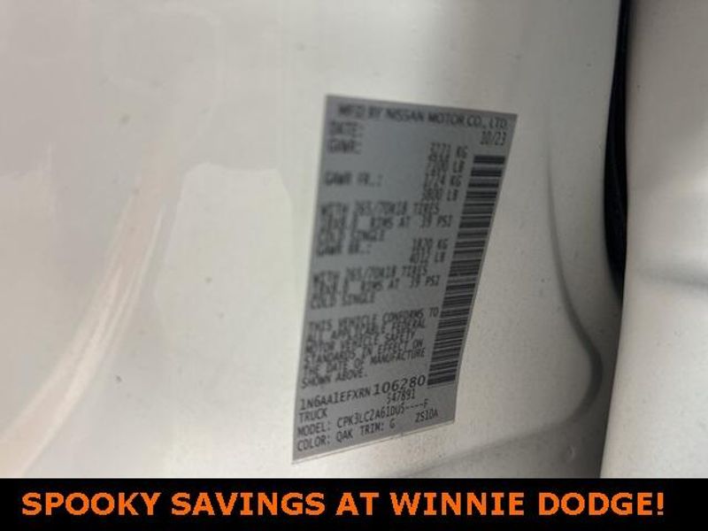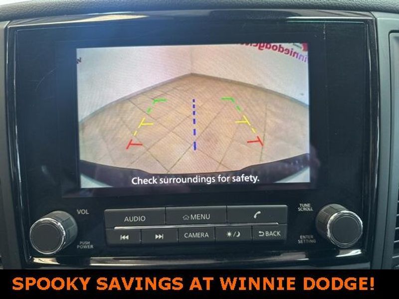 THIS VEHICLE IS EQUIPPED THE FOLLOWING FEATURES AND OPTIONS: Accessory Utility Package (Bumper Step, Drop In Bed Liner, and Trailer Hitch), SV Convenience Package (120V/12V Outlets In Back Of Center Console, 2 Illuminated USB-A Ports In Back Of Center Console, Auto-Dimming Rear-View Mirror, Dedicated Cell Phone Holder, Dual Illuminated Vanity Mirror Front Sun Visors, Dual Zone Automatic HVAC, Front & Rear Parking Sensors, Heated Front Captain's Chairs, Intelligent Key System, Leather-Wrapped Steering Wheel, Mood Light, NissanConnect Services, Overhead Console w/Sunglass Holder, Power Sliding Rear Window w/Defogger, Rear HVAC Vents, Remote Engine Start System, and Wi-Fi Hotspot), 3.692 Axle Ratio, 4-Wheel Disc Brakes, 6 Speakers, ABS brakes, Air Conditioning, Alloy wheels, AM/FM radio: SiriusXM, Auto High-beam Headlights, Blind Spot Warning, Brake assist, Bumpers: chrome, Carpet Floor Mats (L95), Cloth Seat Trim, Driver door bin, Dual front impact airbags, Dual front side impact airbags, Electronic Stability Control, Front anti-roll bar, Front Center Armrest w/Storage, Front reading lights, Front Split Bench Seat (40/20/40), Front wheel independent suspension, Fully automatic headlights, Heated door mirrors, Illuminated entry, Knee airbag, Low tire pressure warning, NissanConnect featuring Apple CarPlay and Android Auto, Occupant sensing airbag, Outside temperature display, Overhead airbag, Overhead console, Panic alarm, Passenger door bin, Passenger vanity mirror, Power door mirrors, Power steering, Power windows, Radio data system, Radio: AM/FM Audio System, Rear anti-roll bar, Rear Parking Sensors, Rear reading lights, Rear seat center armrest, Rear step bumper, Rear window defroster, Remote keyless entry, Security system, Speed control, Speed-sensing steering, Speed-Sensitive Wipers, Splash Guards, Split folding rear seat, Steering wheel mounted audio controls, Tachometer, Telescoping steering wheel, Tilt steering wheel, Traction control, Trip computer, Variably intermittent wipers, Voltmeter, and Wheels: 18'' x 8'' Painted & Machined Alloy.