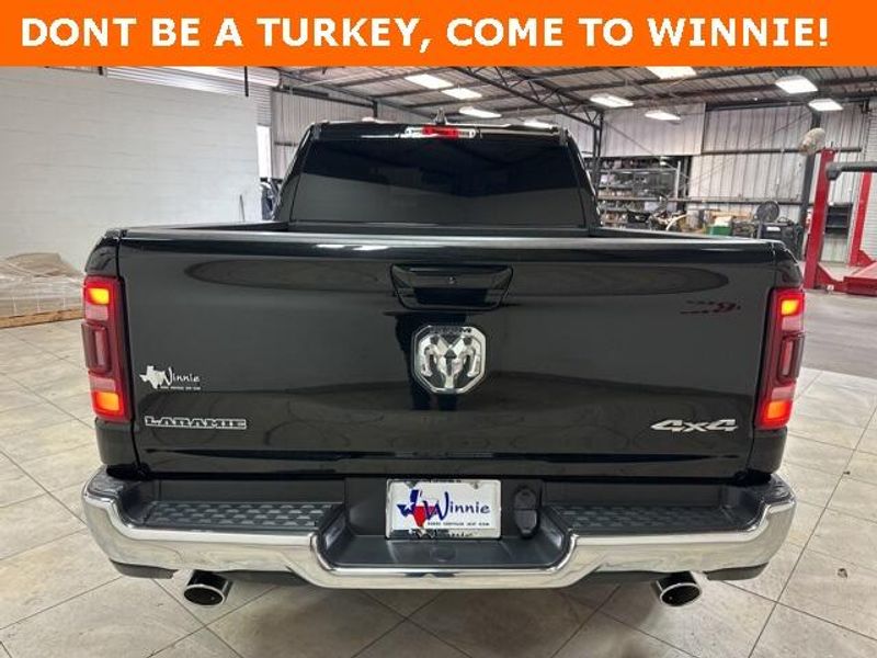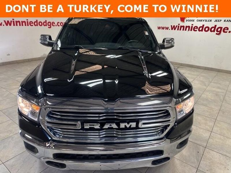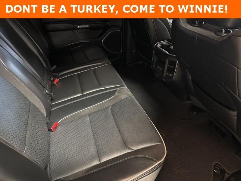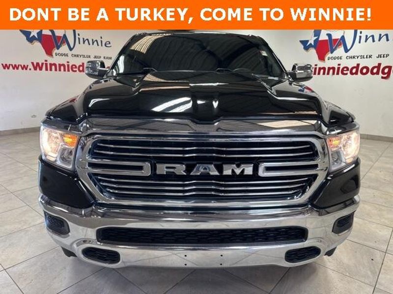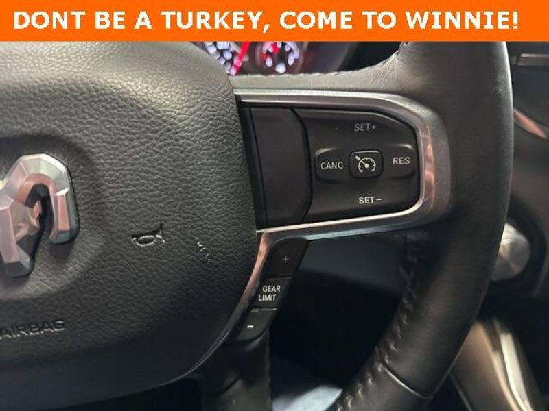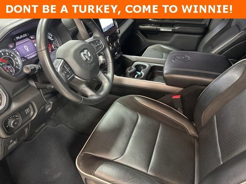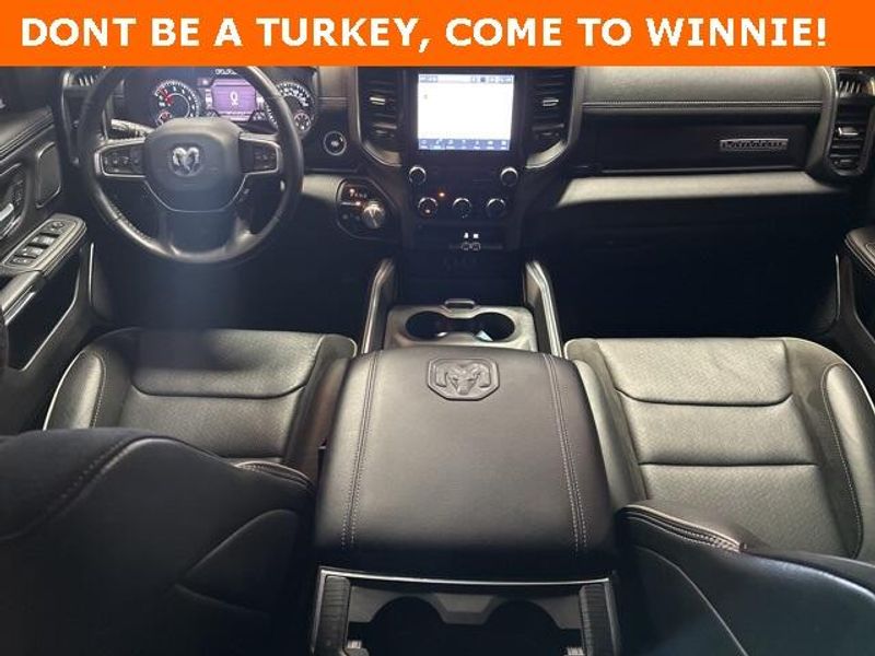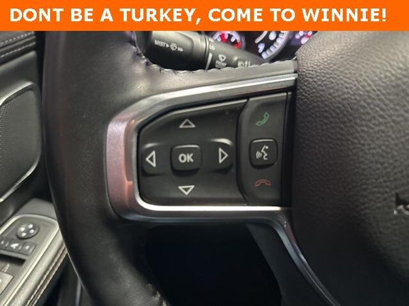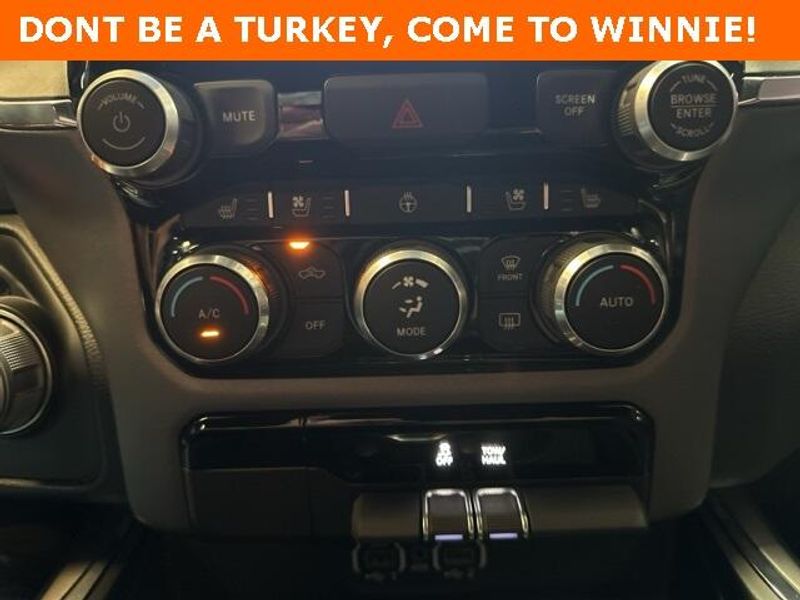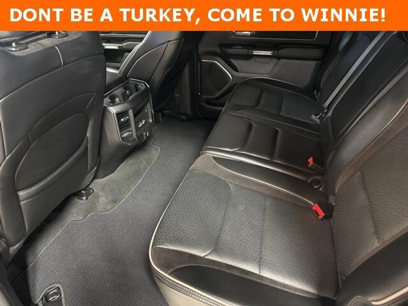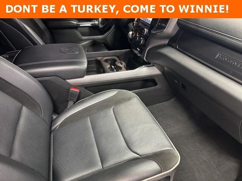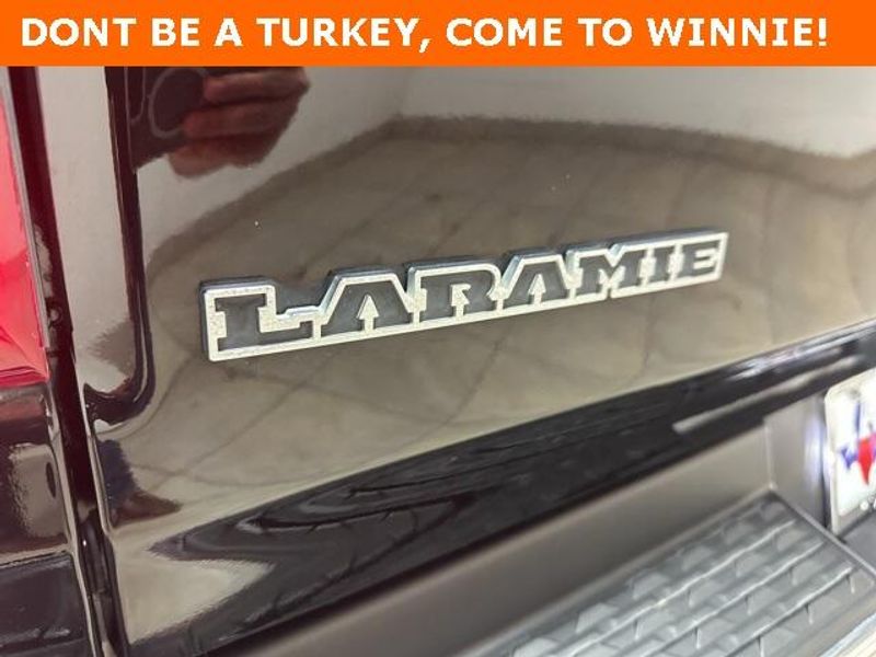 THIS VEHICLE IS EQUIPPED THE FOLLOWING FEATURES AND OPTIONS: Quick Order Package 27H Laramie, 10 Speakers, 3 Rear Seat Head Restraints, 3.21 Rear Axle Ratio, 4 Way Front Headrests, 4-Wheel Disc Brakes, 48V Belt Starter Generator, 4G LTE Wi-Fi Hot Spot, ABS brakes, Air Conditioning, Alloy wheels, AM/FM radio: SiriusXM with 360L, Apple CarPlay, Apple CarPlay/Android Auto, Audio memory, Auto-dimming door mirrors, Auto-Dimming Exterior Driver Mirror, Auto-dimming Rear-View mirror, Automatic temperature control, Brake assist, Bumpers: chrome, Chrome Exterior Mirrors, Compass, Connected Travel & Traffic Services, Connectivity - US/Canada, Convex Wide-Angle Exterior Mirror Insert, Delay-off headlights, Driver door bin, Driver Seat Memory, Driver vanity mirror, Dual front impact airbags, Dual front side impact airbags, Electronic Stability Control, Exterior Mirrors Courtesy Lamps, Exterior Mirrors w/Heating Element, Exterior Mirrors w/Memory, Exterior Mirrors w/Supplemental Signals, For Details, Visit DriveUconnect.com, For More Info, Call 800-643-2112, Front anti-roll bar, Front Center Armrest w/Storage, Front dual zone A/C, Front fog lights, Front License Plate Bracket, Front reading lights, Front Seat Back Map Pockets, Front wheel independent suspension, Fully automatic headlights, Garage door transmitter, Global Telematics Box Module (TBM), Google Android Auto, GPS Navigation, HD Radio, Heated door mirrors, Heated Front Seats, Heated front seats, Heated Steering Wheel, Heated steering wheel, Illuminated entry, Integrated Voice Command w/Bluetooth, Leather steering wheel, Leather Trim 40/20/40 Bench Seat, Low tire pressure warning, Manufacturer's Statement of Origin, Memory seat, Navigation System, Occupant sensing airbag, Outside temperature display, Overhead airbag, Overhead console, Panic alarm, ParkView Rear Back-Up Camera, Passenger door bin, Passenger vanity mirror, Power 2-Way Driver Lumbar Adjust, Power 2-Way Passenger Lumbar Adjust, Power 8-Way Driver & Passenger Seats, Power door mirrors, Power driver seat, Power passenger seat, Power steering, Power windows, Power-Folding Mirrors, Radio data system, Radio: Uconnect 5 Nav w/8.4'' Display, RAM Grille Badge - Chrome, Rear 60/40 Folding Seat, Rear anti-roll bar, Rear seat center armrest, Rear step bumper, Remote keyless entry, Security system, SiriusXM Radio Service, SiriusXM w/360L, Speed control, Split folding rear seat, Steering wheel mounted audio controls, Tachometer, Telescoping steering wheel, Tilt steering wheel, Traction control, Trip computer, Turn signal indicator mirrors, USB Host Flip, Variably intermittent wipers, Ventilated Front Seats, Ventilated front seats, Voltmeter, and Wheels: 18'' x 8'' Aluminum Base PainteD.