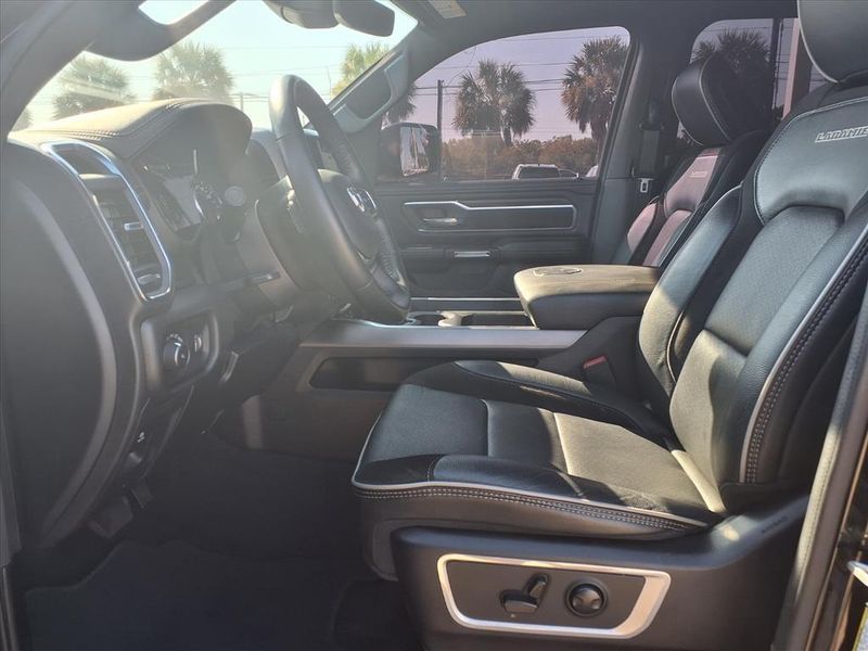 THIS VEHICLE IS EQUIPPED WITH THE FOLLOWING FEATURES AND OPTIONS :Quick Order Package 27H Laramie, 10 Speakers, 3 Rear Seat Head Restraints, 3.21 Rear Axle Ratio, 4 Way Front Headrests, 4-Wheel Disc Brakes, 48V Belt Starter Generator, 4G LTE Wi-Fi Hot Spot, ABS brakes, Air Conditioning, Alloy wheels, AM/FM radio: SiriusXM with 360L, Apple CarPlay, Apple CarPlay/Android Auto, Audio memory, Auto-dimming door mirrors, Auto-Dimming Exterior Driver Mirror, Auto-dimming Rear-View mirror, Automatic temperature control, Brake assist, Bumpers: chrome, Chrome Exterior Mirrors, Compass, Connected Travel & Traffic Services, Connectivity - US/Canada, Convex Wide-Angle Exterior Mirror Insert, Delay-off headlights, Driver door bin, Driver Seat Memory, Driver vanity mirror, Dual front impact airbags, Dual front side impact airbags, Electronic Stability Control, Exterior Mirrors Courtesy Lamps, Exterior Mirrors w/Heating Element, Exterior Mirrors w/Memory, Exterior Mirrors w/Supplemental Signals, For Details, Visit DriveUconnect.com, For More Info, Call 800-643-2112, Front anti-roll bar, Front Center Armrest w/Storage, Front dual zone A/C, Front fog lights, Front License Plate Bracket, Front reading lights, Front Seat Back Map Pockets, Front wheel independent suspension, Fully automatic headlights, Garage door transmitter, Global Telematics Box Module (TBM), Google Android Auto, GPS Navigation, HD Radio, Heated door mirrors, Heated Front Seats, Heated front seats, Heated Steering Wheel, Heated steering wheel, Illuminated entry, Integrated Voice Command w/Bluetooth, Leather steering wheel, Leather Trim 40/20/40 Bench Seat, Low tire pressure warning, Manufacturer's Statement of Origin, Memory seat, Navigation System, Occupant sensing airbag, Outside temperature display, Overhead airbag, Overhead console, Panic alarm, ParkView Rear Back-Up Camera, Passenger door bin, Passenger vanity mirror, Power 2-Way Driver Lumbar Adjust, Power 2-Way Passenger Lumbar Adjust, Power 8-Way Driver & Passenger Seats, Power door mirrors, Power driver seat, Power passenger seat, Power steering, Power windows, Power-Folding Mirrors, Radio data system, Radio: Uconnect 5 Nav w/8.4'' Display, RAM Grille Badge - Chrome, Rear 60/40 Folding Seat, Rear anti-roll bar, Rear seat center armrest, Rear step bumper, Remote keyless entry, Security system, SiriusXM Radio Service, SiriusXM w/360L, Speed control, Split folding rear seat, Steering wheel mounted audio controls, Tachometer, Telescoping steering wheel, Tilt steering wheel, Traction control, Trip computer, Turn signal indicator mirrors, USB Host Flip, Variably intermittent wipers, Ventilated Front Seats, Ventilated front seats, Voltmeter, and Wheels: 18'' x 8'' Aluminum Base PainteD. Recent Arrival!