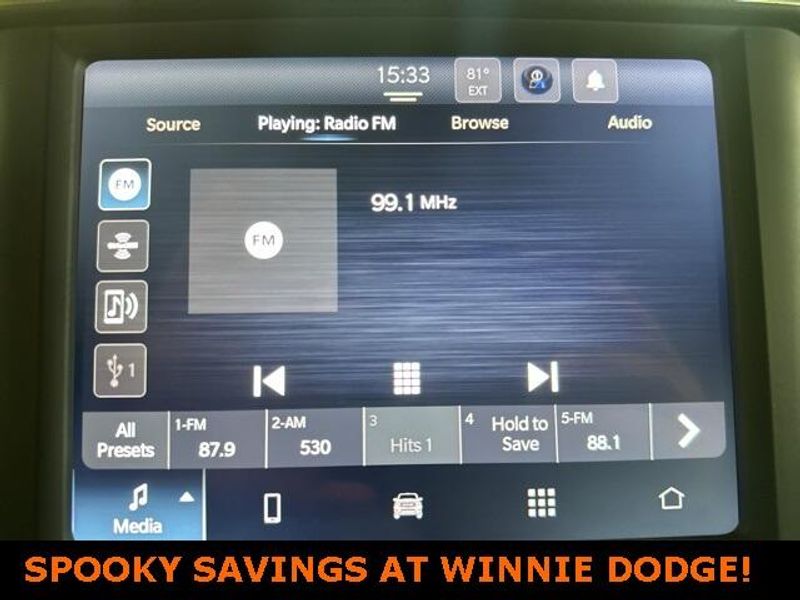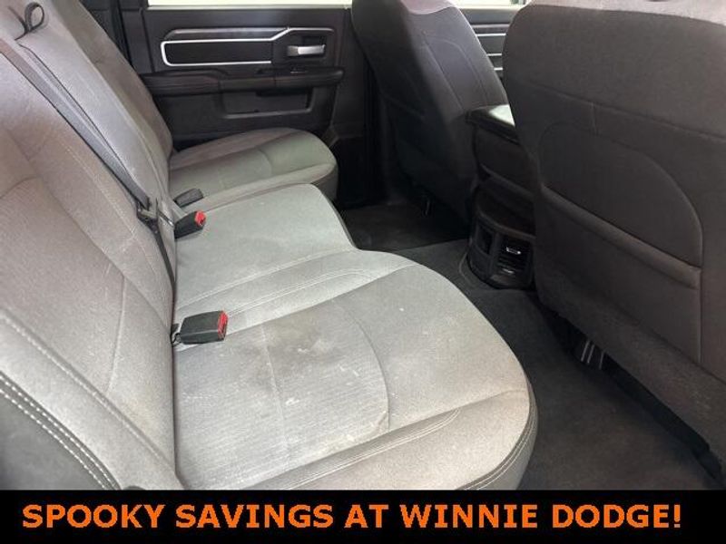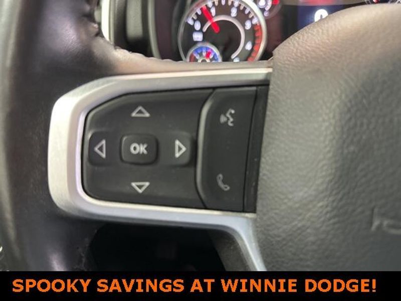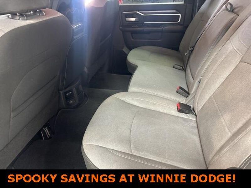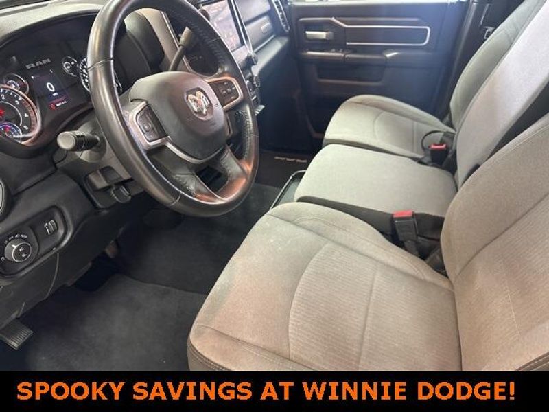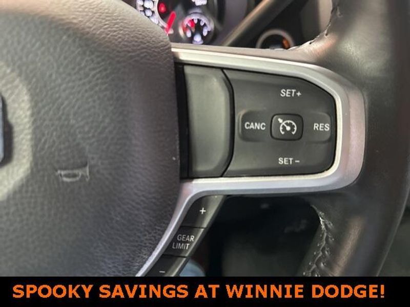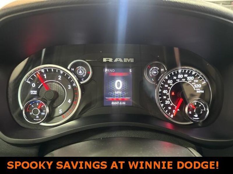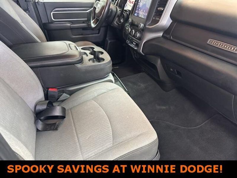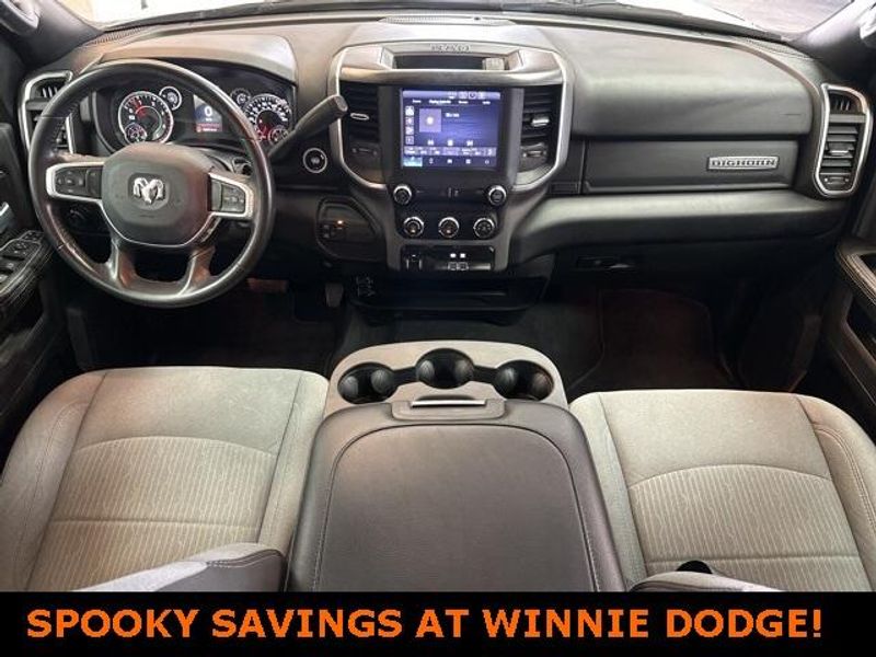 THIS VEHICLE IS EQUIPPED THE FOLLOWING FEATURES AND OPTIONS: Level 1 Equipment Group (2 Way Rear Headrest Seat, 2nd Row In Floor Storage Bins, 4 Way Front Headrests, 40/20/40 Split Bench Seat, 4G LTE Wi-Fi Hot Spot, 8.4'' Touchscreen Display, Apple CarPlay, Auto Power-Folding Mirrors, Big Horn IP Badge, Black Exterior Mirrors, Bluetooth Handsfree Phone & Audio, Center Hub, Connectivity - US/Canada, Dual Glove Boxes, Exterior Mirrors Courtesy Lamps, Exterior Mirrors w/Heating Element, Exterior Mirrors w/Supplemental Signals, Foam Bottle Insert (Door Trim Panel), Footwell Courtesy Lamp, For Details, Visit DriveUconnect.com, For More Info, Call 800-643-2112, Forward & Reverse Utility Lights, Front Armrest w/Cupholders, Front Center Seat Cushion Storage, Front Fog Lamps, Front Seat Back Map Pockets, Global Telematics Box Module (TBM), Glove Box Lamp, Google Android Auto, GPS Antenna Input, Integrated Center Stack Radio, Integrated Voice Command w/Bluetooth, Leather Wrapped Steering Wheel, Locking Lower Glove Box, Manual Adjust 4-Way Front Passenger Seat, Mirror Running Lights, Power 2-Way Driver Lumbar Adjust, Power Adjust 8-Way Driver Seat, Power Adjust Mirrors, Power Adjustable Convex Aux Mirrors, Power Heated Fold Telescope Mirrors, Power Telescoping Mirrors, Rear 60/40 Folding Seat, Rear Dome w/On/Off Switch Lamp, Remote USB Port - Charge Only, Selectable Tire Fill Alert, SiriusXM Radio Service, SiriusXM Satellite Radio, Steering Wheel Mounted Audio Controls, Storage Tray, and Wheels: 18'' x 8.0'' Polished Aluminum), Quick Order Package 2HZ Big Horn, 3.73 Axle Ratio, 4-Wheel Disc Brakes, 6 Speakers, ABS brakes, Active Noise Control System, Air Conditioning, Brake assist, Bumpers: chrome, Center Stack Storage Drawer, Chrome Flat Cab-Length Side Steps, Cloth 40/20/40 Bench Seat, Compass, Delay-off headlights, Driver door bin, Dual front impact airbags, Dual front side impact airbags, Electronic Stability Control, Electronically Controlled Throttle, Emergency communication system: SiriusXM Guardian, Front anti-roll bar, Front Center Armrest w/Storage, Front License Plate Bracket, Front reading lights, Fully automatic headlights, Heated door mirrors, Illuminated entry, Low tire pressure warning, Manual Adjust 4-Way Driver Seat, Manufacturer's Statement of Origin, Occupant sensing airbag, Outside temperature display, Overhead airbag, Overhead console, Panic alarm, ParkView Rear Back-Up Camera, Passenger door bin, Passenger vanity mirror, Power door mirrors, Power steering, Power windows, Premium Cloth 40/20/40 Bench Seat (DISC), Radio data system, Radio: Uconnect 3 w/5'' Display, Radio: Uconnect 5 W w/8.4'' Display, Rear anti-roll bar, Rear Folding Seat, Rear seat center armrest, Rear step bumper, Remote keyless entry, Speed control, Tachometer, Tilt steering wheel, Tip Start, Tow Hooks, Traction control, Trip computer, Turn signal indicator mirrors, Variably intermittent wipers, Voltmeter, and Wheels: 18'' x 8.0'' Steel Chrome ClaD.