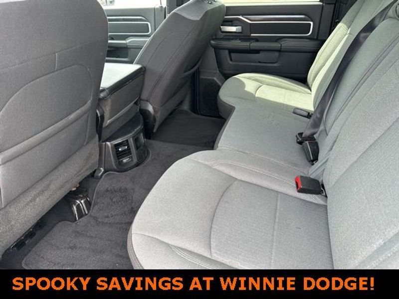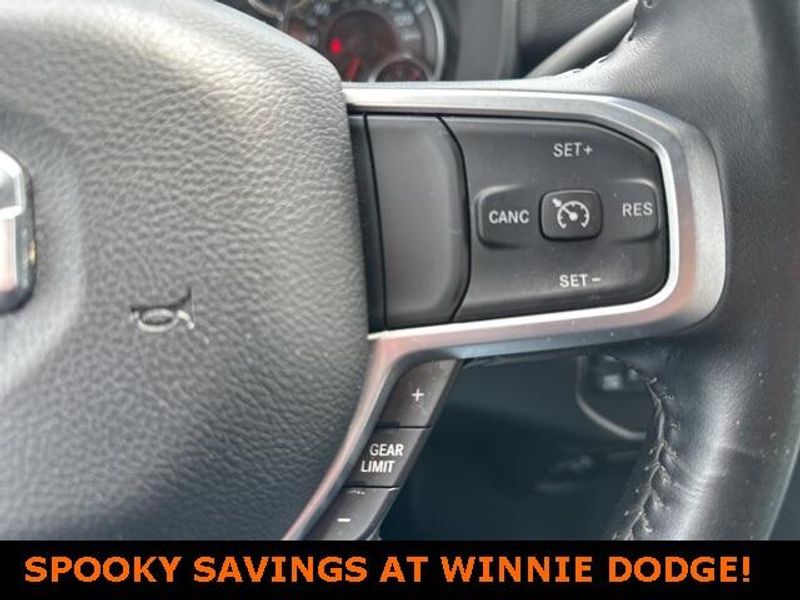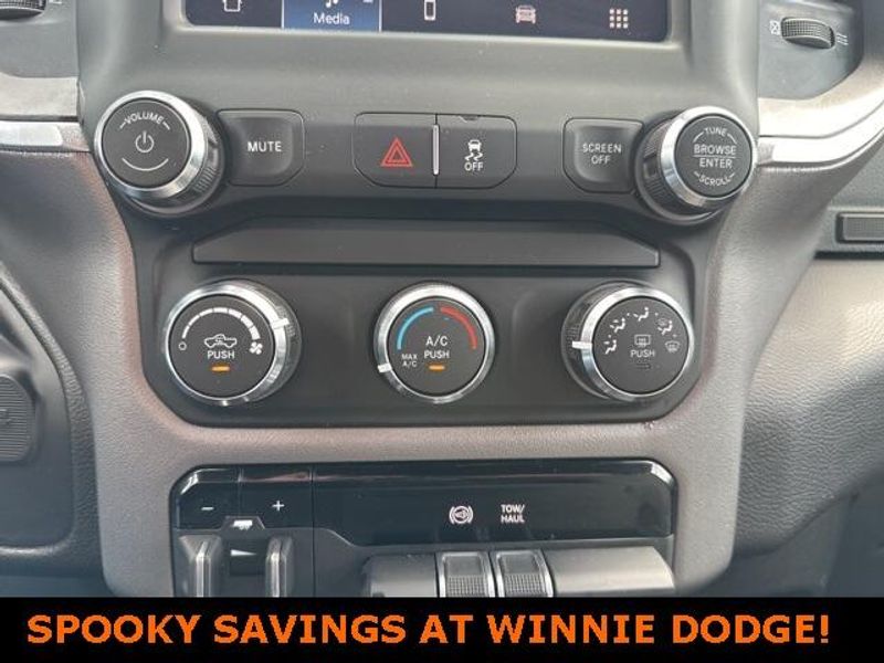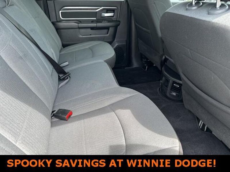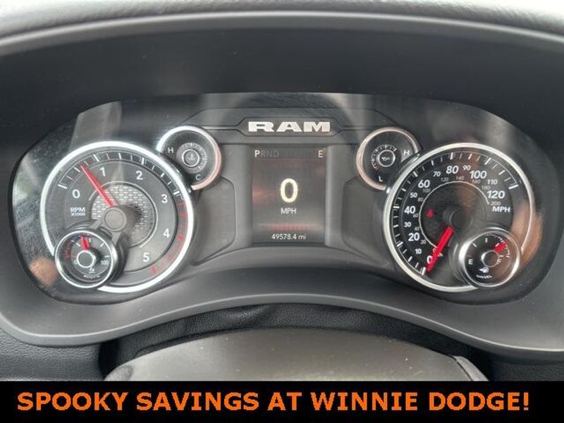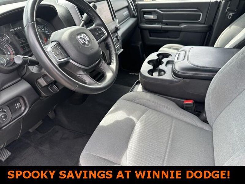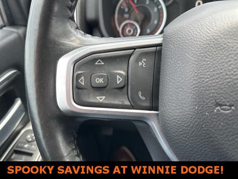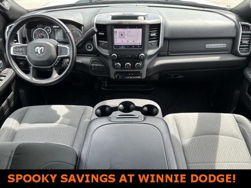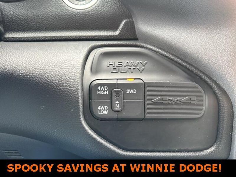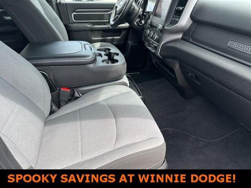 THIS VEHICLE IS EQUIPPED THE FOLLOWING FEATURES AND OPTIONS: Level 1 Equipment Group (2 Way Rear Headrest Seat, 2nd Row In Floor Storage Bins, 4 Way Front Headrests, 40/20/40 Split Bench Seat, 4G LTE Wi-Fi Hot Spot, 8.4'' Touchscreen Display, Apple CarPlay, Auto Power-Folding Mirrors, Big Horn IP Badge, Black Exterior Mirrors, Bluetooth Handsfree Phone & Audio, Center Hub, Connectivity - US/Canada, Dual Glove Boxes, Exterior Mirrors Courtesy Lamps, Exterior Mirrors w/Heating Element, Exterior Mirrors w/Supplemental Signals, Foam Bottle Insert (Door Trim Panel), Footwell Courtesy Lamp, For Details, Visit DriveUconnect.com, For More Info, Call 800-643-2112, Forward & Reverse Utility Lights, Front Armrest w/Cupholders, Front Center Seat Cushion Storage, Front Fog Lamps, Front Seat Back Map Pockets, Global Telematics Box Module (TBM), Glove Box Lamp, Google Android Auto, GPS Antenna Input, Integrated Center Stack Radio, Integrated Voice Command w/Bluetooth, Leather Wrapped Steering Wheel, Locking Lower Glove Box, Manual Adjust 4-Way Front Passenger Seat, Mirror Running Lights, Power 2-Way Driver Lumbar Adjust, Power Adjust 8-Way Driver Seat, Power Adjust Mirrors, Power Adjustable Convex Aux Mirrors, Power Heated Fold Telescope Mirrors, Power Telescoping Mirrors, Rear 60/40 Folding Seat, Rear Dome w/On/Off Switch Lamp, Remote USB Port - Charge Only, Selectable Tire Fill Alert, SiriusXM Radio Service, SiriusXM Satellite Radio, Steering Wheel Mounted Audio Controls, Storage Tray, and Wheels: 18'' x 8.0'' Polished Aluminum), Quick Order Package 2HZ Big Horn, 3.73 Axle Ratio, 4-Wheel Disc Brakes, 6 Speakers, ABS brakes, Active Noise Control System, Air Conditioning, Brake assist, Bumpers: chrome, Center Stack Storage Drawer, Chrome Flat Cab-Length Side Steps, Cloth 40/20/40 Bench Seat, Compass, Delay-off headlights, Driver door bin, Dual front impact airbags, Dual front side impact airbags, Electronic Stability Control, Electronically Controlled Throttle, Emergency communication system: SiriusXM Guardian, Front anti-roll bar, Front Center Armrest w/Storage, Front License Plate Bracket, Front reading lights, Fully automatic headlights, Heated door mirrors, Illuminated entry, Low tire pressure warning, Manual Adjust 4-Way Driver Seat, Manufacturer's Statement of Origin, Occupant sensing airbag, Outside temperature display, Overhead airbag, Overhead console, Panic alarm, ParkView Rear Back-Up Camera, Passenger door bin, Passenger vanity mirror, Power door mirrors, Power steering, Power windows, Premium Cloth 40/20/40 Bench Seat (DISC), Radio data system, Radio: Uconnect 3 w/5'' Display, Radio: Uconnect 5 W w/8.4'' Display, Rear anti-roll bar, Rear Folding Seat, Rear seat center armrest, Rear step bumper, Remote keyless entry, Speed control, Tachometer, Tilt steering wheel, Tip Start, Tow Hooks, Traction control, Trip computer, Turn signal indicator mirrors, Variably intermittent wipers, Voltmeter, and Wheels: 18'' x 8.0'' Steel Chrome ClaD.