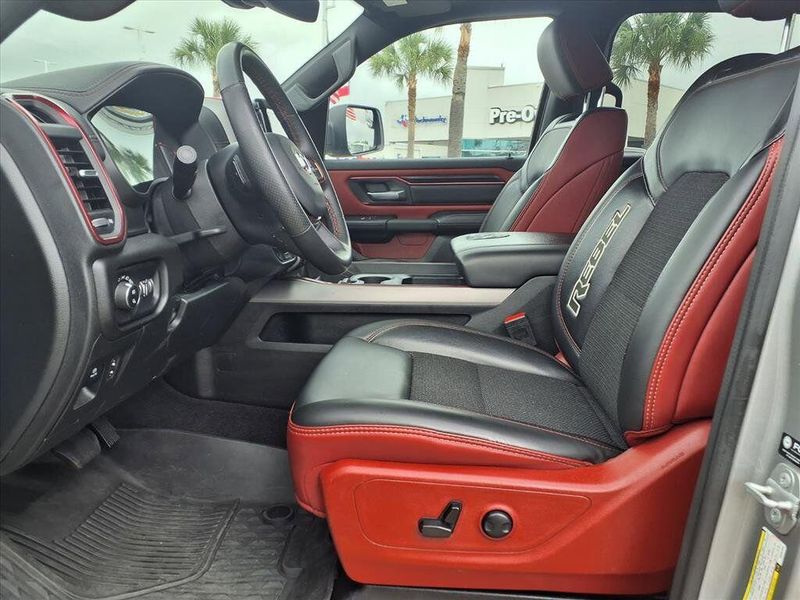 THIS VEHICLE IS EQUIPPED WITH THE FOLLOWING FEATURES AND OPTIONS :Quick Order Package 21W Rebel, Rebel Level 1 Equipment Group (Auto Power-Folding Mirrors, Auto-Dimming Exterior Driver Mirror, Black Premium Power Mirrors, Convex Wide-Angle Exterior Mirror Insert, Exterior Mirrors Courtesy Lamps, Exterior Mirrors w/Heating Element, Exterior Mirrors w/Supplemental Signals, Power Adjustable Pedals, Rear Window Defroster, Remote Tailgate Release, and Wireless Charging Pad), Billet Silver Metallic Clearcoat, 10 Speakers, 3.92 Rear Axle Ratio, 4 Way Front Headrests, 4-Wheel Disc Brakes, 4G LTE Wi-Fi Hot Spot, ABS brakes, Air Conditioning, Alloy wheels, AM/FM radio: SiriusXM with 360L, Apple CarPlay, Apple CarPlay/Android Auto, Auto High-beam Headlights, Auto-dimming Rear-View mirror, Automatic temperature control, Brake assist, Bucket Seats, Cloth/Vinyl Bucket Seats, Compass, Connected Travel & Traffic Services, Connectivity - US/Canada, Delay-off headlights, Driver door bin, Driver vanity mirror, Dual front impact airbags, Dual front side impact airbags, Electronic Stability Control, Front anti-roll bar, Front Bucket Seats, Front Center Armrest w/Storage, Front dual zone A/C, Front fog lights, Front License Plate Bracket, Front reading lights, Front Seat Back Map Pockets, Front wheel independent suspension, Full Length Upgraded Floor Console, Fully automatic headlights, Garage door transmitter, Google Android Auto, GPS Antenna Input, GPS Navigation, Heated door mirrors, Heated front seats, Heated steering wheel, Illuminated entry, Integrated Voice Command w/Bluetooth, Leather steering wheel, Low tire pressure warning, Manual Folding Exterior Mirrors, Manufacturer's Statement of Origin, Navigation System, Occupant sensing airbag, Outside temperature display, Overhead airbag, Overhead console, Panic alarm, ParkView Rear Back-Up Camera, Passenger door bin, Passenger vanity mirror, Power Adjust 8-Way Driver Seat, Power door mirrors, Power driver seat, Power steering, Power windows, Radio data system, Radio: Uconnect 5 Nav w/12.0'' Display, Rear 60/40 Folding Seat, Rear anti-roll bar, Rear seat center armrest, Rear step bumper, Remote keyless entry, SiriusXM w/360L, Speed control, Split folding rear seat, Steering wheel mounted audio controls, Tachometer, Telescoping steering wheel, Tilt steering wheel, Traction control, Trip computer, USB Host Flip, Variably intermittent wipers, Voltmeter, and Wheels: 18'' x 8.0'' Painted Mid-Gloss Black. Recent Arrival!