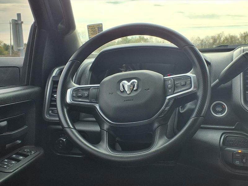 THIS VEHICLE IS EQUIPPED WITH THE FOLLOWING FEATURES AND OPTIONS :Bed Utility Group (LED Bed Lighting, MOPAR Deployable Bed Step, and MOPAR Spray in Bedliner), Quick Order Package 24A Tradesman, Tradesman Level 2A Equipment Group (115-Volt Auxiliary Front Power Outlet, 12'' Touchscreen Display, 2 Way Rear Headrest Seat, 4 Way Front Headrests, 40/20/40 Split Bench Seat, 400W Inverter, 4G LTE Wi-Fi Hot Spot, Air Conditioning ATC with Dual Zone Control, Alexa Built-in, Apple CarPlay, Auto-Dimming Rear-View Mirror, Black Exterior Mirrors, Bright Front Bumper, Bright Rear Bumper, Bright Wheel Skins, Carpet Floor Covering, Center Hub, Chrome Grille Surround, Cloth 40/20/40 Bench Seat, Connected Travel and Traffic Services, Connectivity - US/Canada, Convenience Group, Disassociated Touchscreen Display, Emergency Vehicle Alert System (EVAS), Exterior 115V AC Outlet, Exterior Mirrors Courtesy Lamps, Exterior Mirrors with Heating Element, Exterior Mirrors with Supplemental Signals, For Details Visit DriveUconnect.com, For More Info, Call 800-643-2112, Front and Rear Floor Mats, Front Armrest with Cupholders, Global Telematics Box Module, Google Android Auto, GPS Antenna Input, GPS Navigation, HD Radio, Integrated Voice Command with Bluetooth, Manual Adjust 4-Way Driver Seat, Manual Adjust 4-Way Front Passenger Seat, Manual Folding Exterior Mirrors, Matte Black Mesh with Chrome Grille, Mirror Running Lights, Mopar Black Tubular Side Steps, Off-Road Information Pages, ParkSense Front/Rear Park Assist System, Power Adjust Mirrors, Power Heat Fold Telescopic Mirrors, Power-Adjustable Convex Aux Mirrors, Radio: Uconnect 5 Navigation with 12.0'' Display, Rear Folding Seat, Rear Power Sliding Window, Remote USB Port - Charge Only, Selectable Tire Fill Alert, SiriusXM Radio Service, SiriusXM with 360L, Storage Tray, Tinted Acoustic Windshield Glass, and Trailer Tow Pages), 4-Wheel Disc Brakes, 50 Gallon Fuel Tank, 5th Wheel/Gooseneck Towing Prep Group, 6 Speakers, 6000# Front Axle with Hub Extension, ABS brakes, Air Conditioning, AM/FM radio: SiriusXM, Apple CarPlay/Android Auto, Black Wheel Center Hub, Box and Rear Fender Clearance Lamps, Brake assist, Clearance Lamps, Compass, Delay-off headlights, Delete Deployable Bed Step, Driver door bin, Dual front impact airbags, Dual front side impact airbags, Dual Rear Wheels, Electronic Stability Control, Front anti-roll bar, Front Center Armrest w/Storage, Front fog lights, Front License Plate Bracket, Front reading lights, Fully automatic headlights, Illuminated entry, Low tire pressure warning, Manufacturer's Statement of Origin, Nexen Brand Tires, Occupant sensing airbag, Outside temperature display, Overhead airbag, Overhead console, Panic alarm, ParkView Rear Back-Up Camera, Passenger door bin, Passenger vanity mirror, Power steering, Power windows, Radio data system, Radio: Uconnect 5 with 8.4'' Display, Rear step bumper, Rear Wheelhouse Liners, Rear window defroster, Remote keyless entry, Speed control, Tachometer, Tilt steering wheel, Traction control, Variably intermittent wipers, Voltmeter, Wheels: 17'' x 6.0'' Steel Chrome Clad, and Wheels: 18'' x 8.0'' Black Painted SteeL.